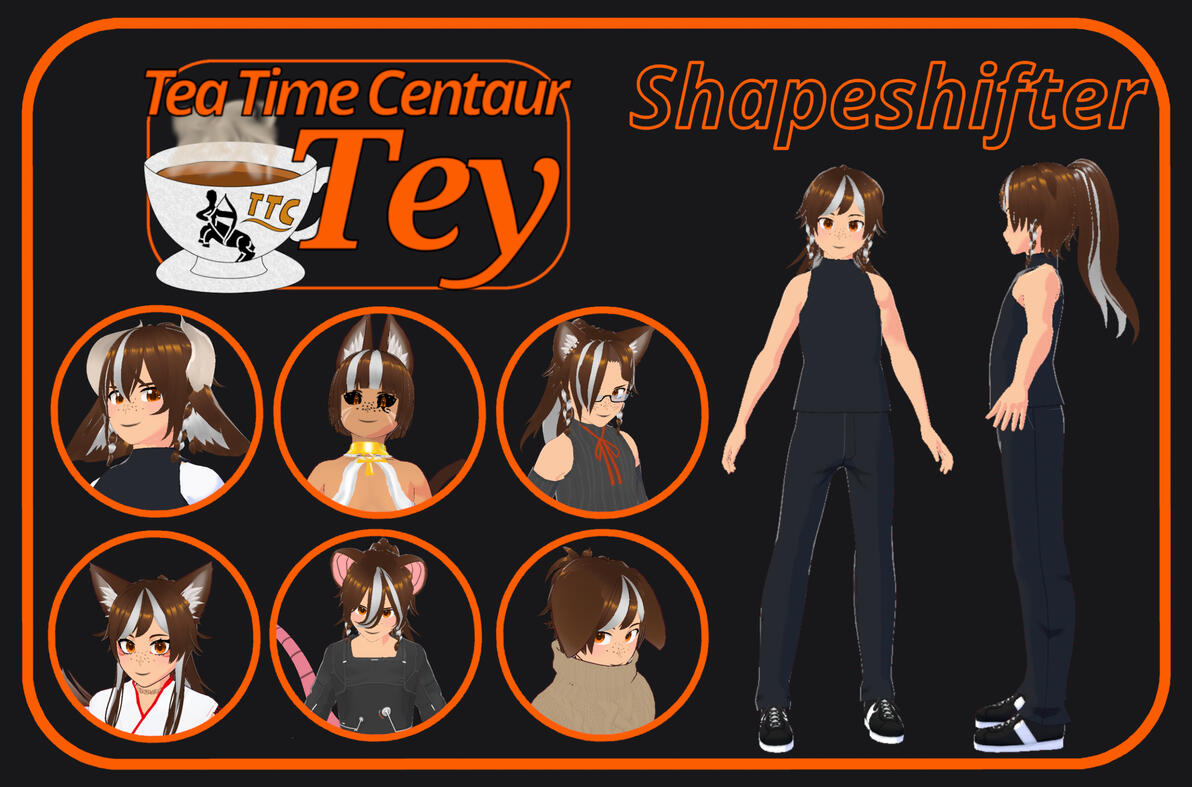 Tey was born and grew up as a normal human.One day he encountered a being of shifting forms, sparking Teys curiousity in physical and mental changes and transformations.Tey and the being became friends and it stays with him in the form of a husky named Fluffey.
